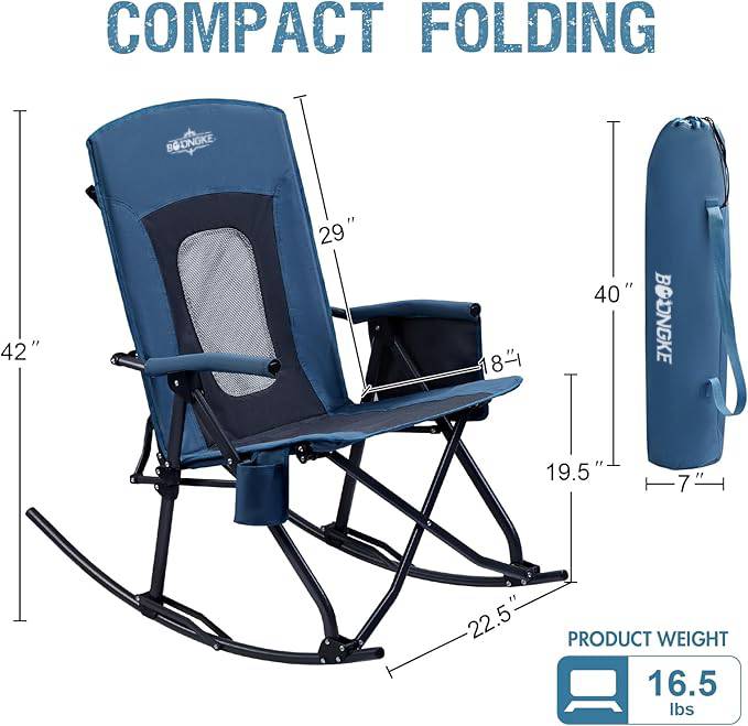 Oversized Folding Rocking Camping Chair Portable Outdoor Rocker with High Back Hard Armrests Carry Bag, Supports 400 lbs, Mesh Back